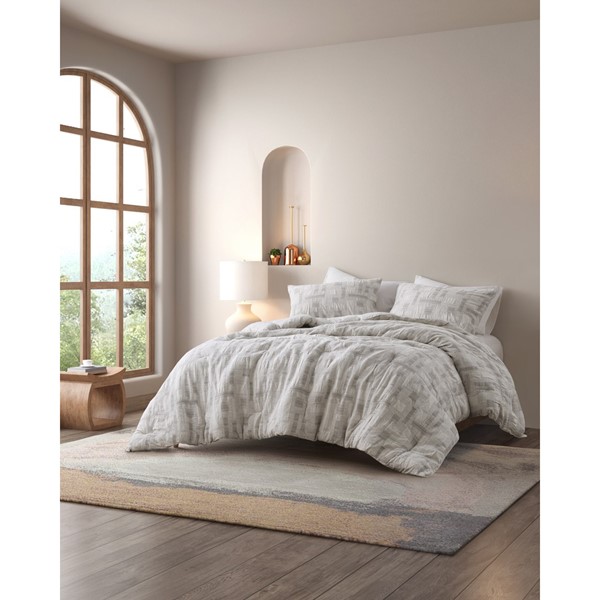 Introducing the new artisanal pattern from INK+IVY, designed to bring a unique touch of craftsmanship to your bedroom. This collection includes 100% cotton comforter and 2 matching shams, each with an easy overlap closure. This comforter features a beautifully designed jacquard weave with a geometric pattern that adds visual interest and texture. Notably, the comforter is filled with 100% hypoallergenic polyester, ensuring it contains no allergens and is dustproof for your peace of mind and comfort. The visible bartacks on the comforter not only add a decorative touch, but also help maintain the insert’s shape and quality over time. As an OEKO-TEX certified textile, you can rest assured knowing this product is safe to be in contact with your skin. The entire set is machine washable for easy care (please see the care label for detailed instructions), and we recommend using a commercial washer and dryer to provide ample room for movement and ensure optimal cleaning results.