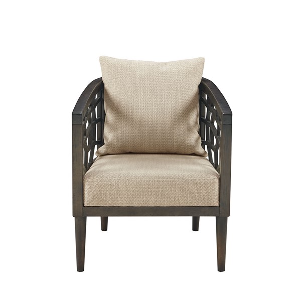 Dress up your decor with mid-century style of the INK+IVY Crackle Accent Chair. Highlighted in a dark burnt walnut finish, this accent chair features natural hued upholstery that creates a stunning contrast. The seat and back is filled with high-density foam filling for exceptional comfort, while the solid wood frame provides long-lasting support. Incorporate this lounge chair into your living room to add a stylish flair to your space. Leg assembly is required.