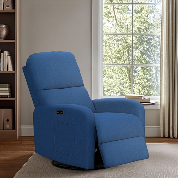 INK+IVY Dakota Power Recliner 3-in-1 with Swivel, Glider, Charging Station in Blue, One Size II103-0609