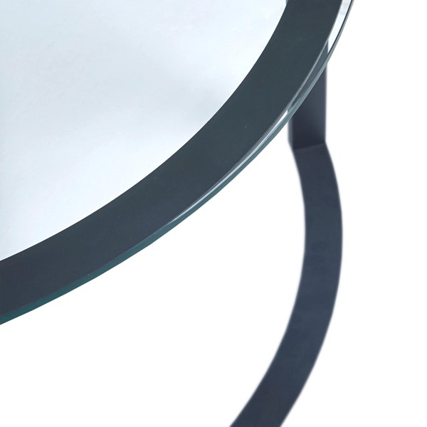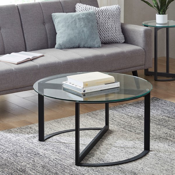 Complete your living room decor with the bold style of the INK+IVY Evan Round Glass Coffee Table. This round coffee table features a tempered clear glass table top with a solid metal base in a black finish to create a contemporary look. Simple in the design, this glass coffee table brings a casual modern touch to easily complement your home decor. Assembly is required and tools are included.