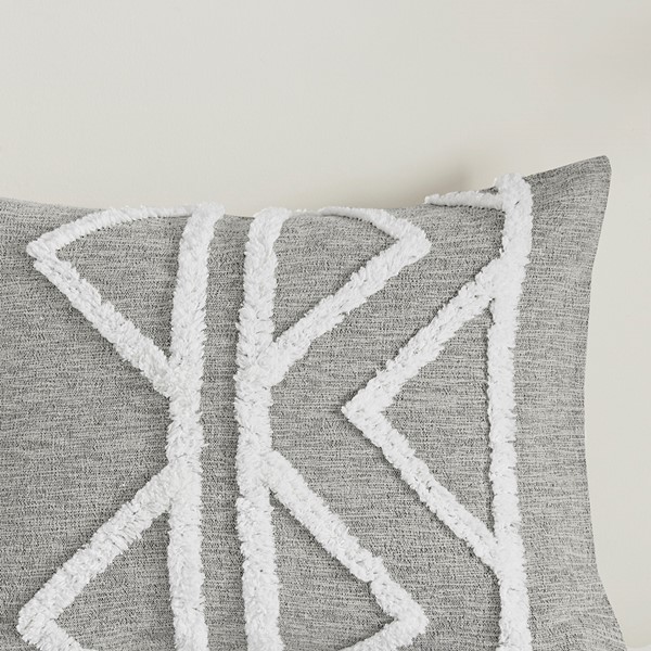 The INK+IVY Hayes 3 Piece Cotton Chambray Duvet Cover Set with Chenille brings a perfect blend modern and boho styles to your bedroom. This cotton duvet cover features chenille taping and trims, in a geometric design, that contrast the grey chambray fabric, for a chic boho look. A solid reverse offers a light contrast to the top of the bed. The 2 matching shams repeat the pattern of duvet cover to complete this globally inspired bedding set. Machine washable for easy care, this 100% cotton duvet cover set adds a sophisticated charm to your bedroom decor. A button closure allows you to place a padded insert within the duvet cover and inside corner ties prevent it from shifting (insert is NOT included).