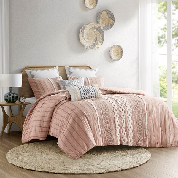 Bring a soft, mid-century look to your bedroom with the INK+IVY Imani Cotton Comforter Mini Set. The cotton comforter features geometric prints with tufted chenille that adds dimension and charm to the bedding set. Visible bartacks give the comforter a duvet-like finish, while the solid reverse complements the eye-catching patterns seen on top of the bed. Two cotton shams reiterate the designs of the comforter, creating a stunning coordinated look. Made from 100% cotton, this comforter mini set is machine washable and offers a refreshingly soft update to your bedroom decor. This bedding set is also OEKO-TEX certified, meaning it does not contain any harmful substances or chemicals, ensuring quality comfort and wellness.