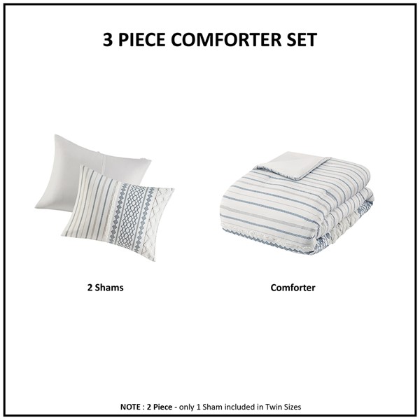 Bring a soft, mid-century look to your bedroom with the INK+IVY Imani Cotton Comforter Mini Set. The cotton comforter features geometric prints with tufted chenille that adds dimension and charm to the bedding set. Visible bartacks give the comforter a duvet-like finish, while the solid reverse complements the eye-catching patterns seen on top of the bed. Two cotton shams reiterate the designs of the comforter, creating a stunning coordinated look. Made from 100% cotton, this comforter mini set is machine washable and offers a refreshingly soft update to your bedroom decor. This bedding set is also OEKO-TEX certified, meaning it does not contain any harmful substances or chemicals, ensuring quality comfort and wellness.