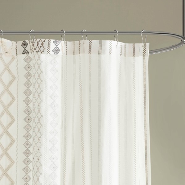 INK+IVY Imani Cotton Printed Shower Curtain with Chenille in Ivory, 72×72″ II70-1121