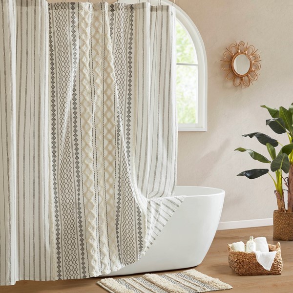 10 reviews for INK+IVY Imani Cotton Printed Shower Curtain with Chenille in Ivory, 72×72″ II70-1121