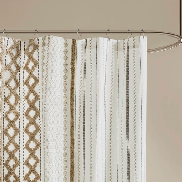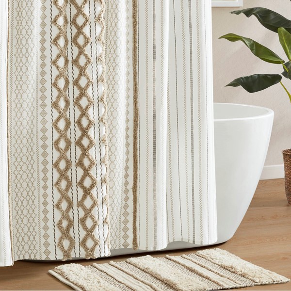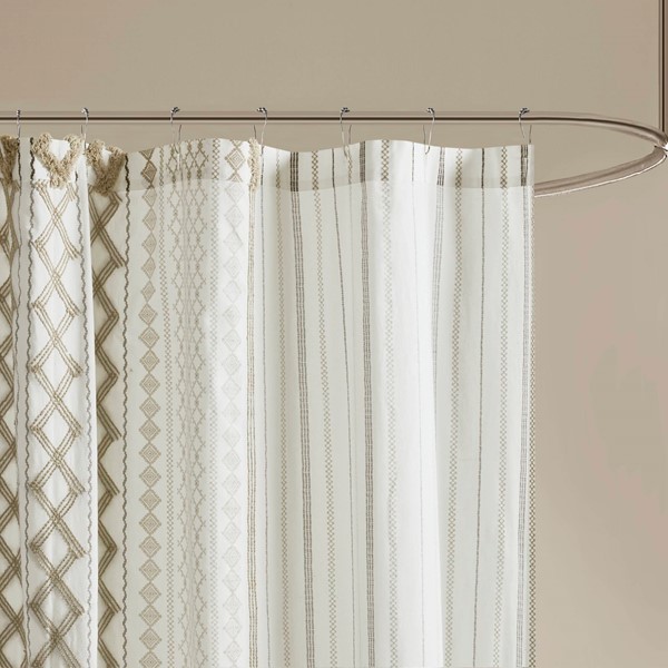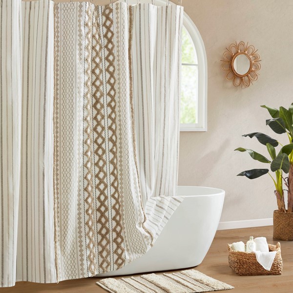 INK+IVY Imani Cotton Printed Shower Curtain with Chenille in Neutral, 72×84″ II70-1323