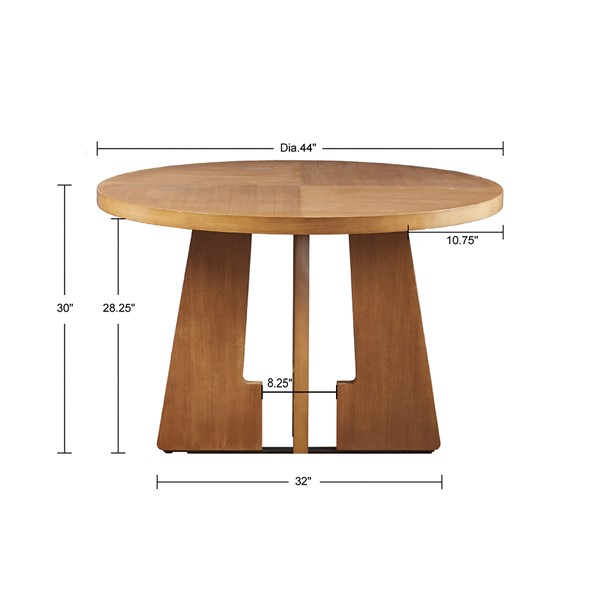 Redefine your dining space with the simple, modern style of the INK+IVY Kennedy 44″ Diameter Round Dining Table. Finished in beautiful pecan wood veneer, this round dining table features a natural wood grain flipped in different directions on the table top to create an eye-catching pattern. An open X-base design provides sturdy support, while also adding to the visual appeal of the contemporary design. Measuring 44″ in diameter, this modern dining table comfortably seats 4 people and adds a warm and inviting update to your dining room. Base assembly is required and tools are included.