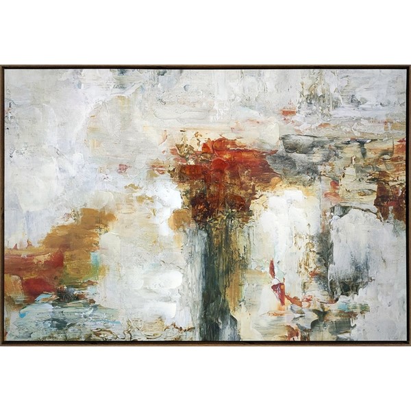 Accentuate your home with the warm, rustic charm of the INK+IVY Kent Abstract Hand Embellishment Framed Canvas. This large canvas wall art features an abstract brushstroke design in warm rust, golden yellow, and rich grey hues for a modern and updated look. Wood grain frame provides a natural warm touch. Measuring 61.18"x41.18" and featuring 2 D-rings on the reverse allow for easy hanging. Spot clean only.