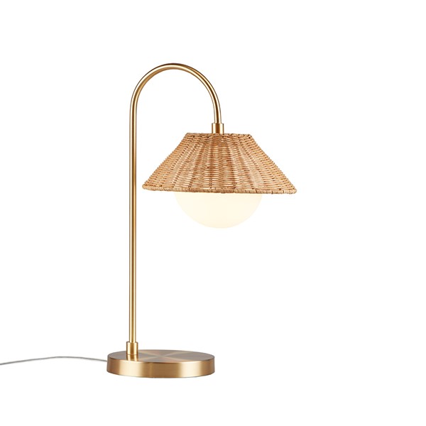 Introducing the Laguna rattan weave shade table lamp from Ink+Ivy – a versatile and stylish lighting solution that will complement any decor. Made from durable iron in a modern gold finish, this table lamp features a natural rattan shade paired with a frosted globe for a warm and inviting glow. Easy to install with a plug-in, 60 inch clear colored cord, this table lamp requires one type B bulb (included). Perfect for indoor use, the Laguna rattan weave table lamp is the ideal choice for creating a cozy and romantic ambiance in any space.