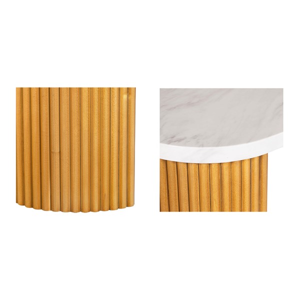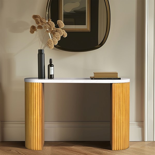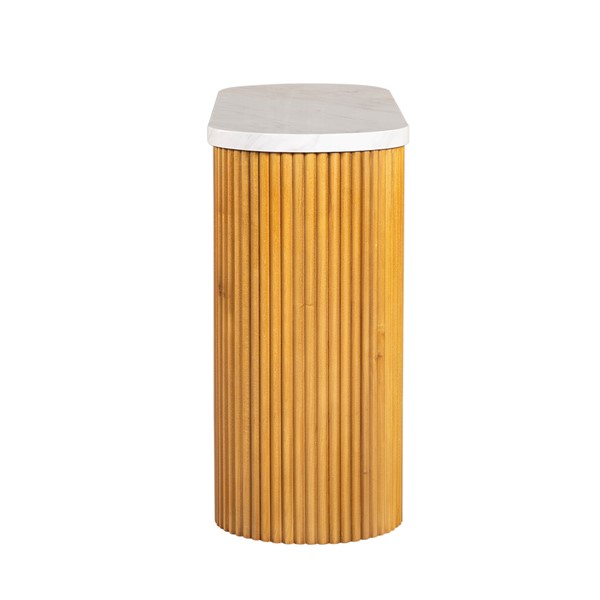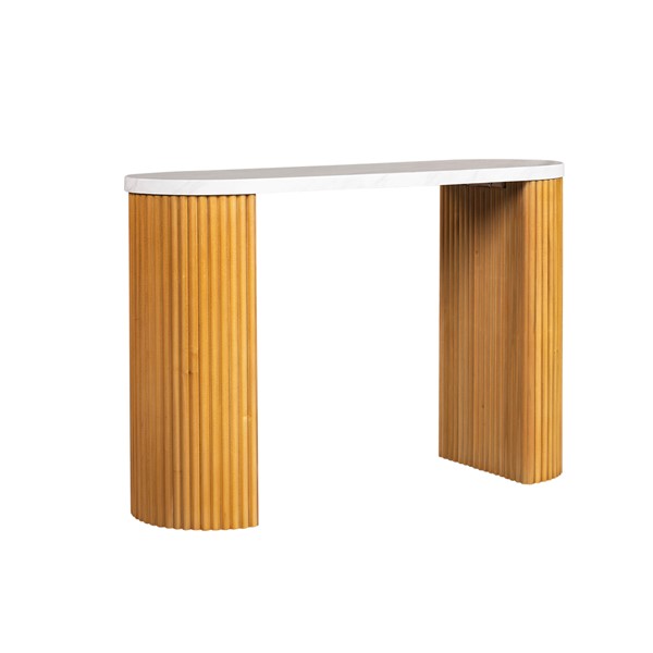 INK+IVY Layana Faux White Marble Console Table with Reeded Wooden Pillar Legs in Natural/Faux White Marble II120-0574