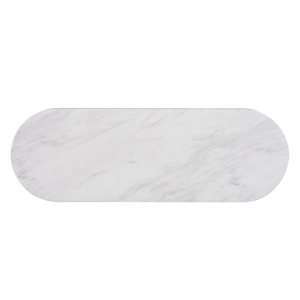 Enhance your entryway with the sophisticated charm of the Layana Oval Console Table by INK+IVY. Perfect as an entryway table, hallway table, or behind the couch as a sofa table, its contemporary oval design and uniquely curved, fluted pillar legs add texture and warmth to any space. The mixed-material finish features a luxurious faux white marble tabletop with elegant veining, elevating the console’s appeal. Ideal for displaying decor or serving as a focal point, this table combines style and functionality. Assembly is required. Transform your space with the timeless elegance of the Layana entry table.