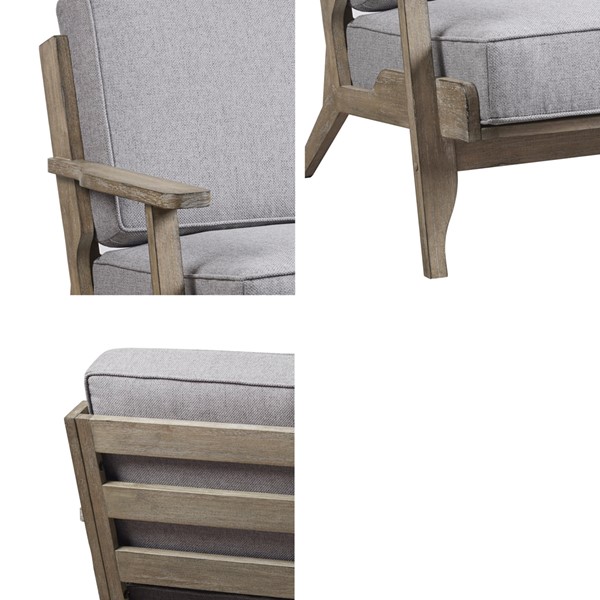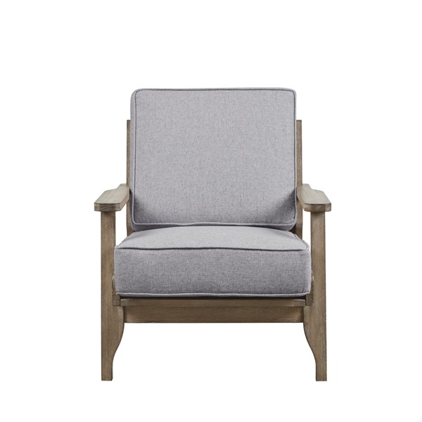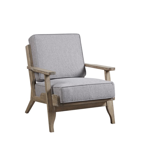 The INK+IVY Malibu Accent Chair offers a perfect blend of style and comfort for your living space. This accent chair features upholstered seat and back with a solid wood frame, creating a chic farmhouse-inspired look. A grey finish on wooden track arms and solid wood frame complement the upholstery to complete to the design. The removable cushion is non-reversible. Assembly required and tools are included.