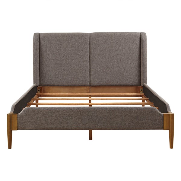 Update your bedroom with the sophisticated style of the INK+IVY Mallory Queen Bed. This queen size bed frame features an upholstered headboard and side rails, in a multi-tonal brown fabric, to create a handsome look. The solid wood legs flaunt a rich and natural wood finish that complements the upholstery. Assembly required, tools included.