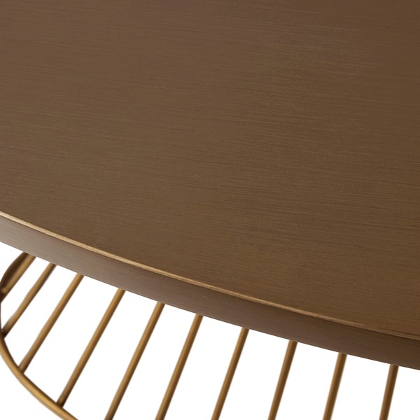 Add a touch of mid century modern to your living room with the Mercer coffee table. The table is inspired by the iconic 60’s silhouette with a modern twist of golden bronze tops and antique bronze wired frames for an updated look. Table will be shipped in 2 cartons. Assembly required.