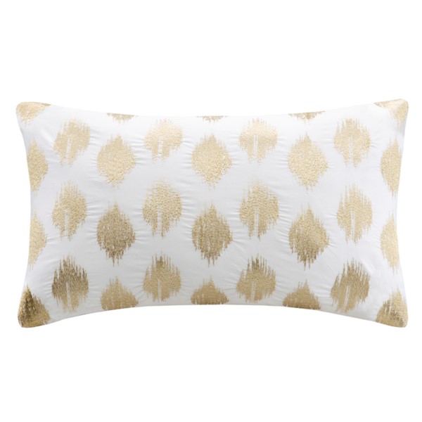 Add a little shine to your home with the INK+IVY Nadia Dot Oblong Pillow. This 12×18" oblong pillow features metallic gold embroidery in an ikat dot pattern on a solid white base for a classic yet modern look for your space. This decorative pillow coordinates with the Ink+Ivy Bedding Collection.