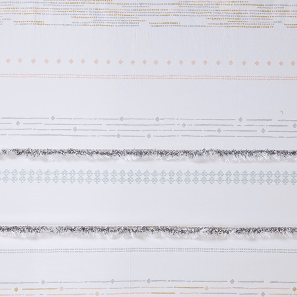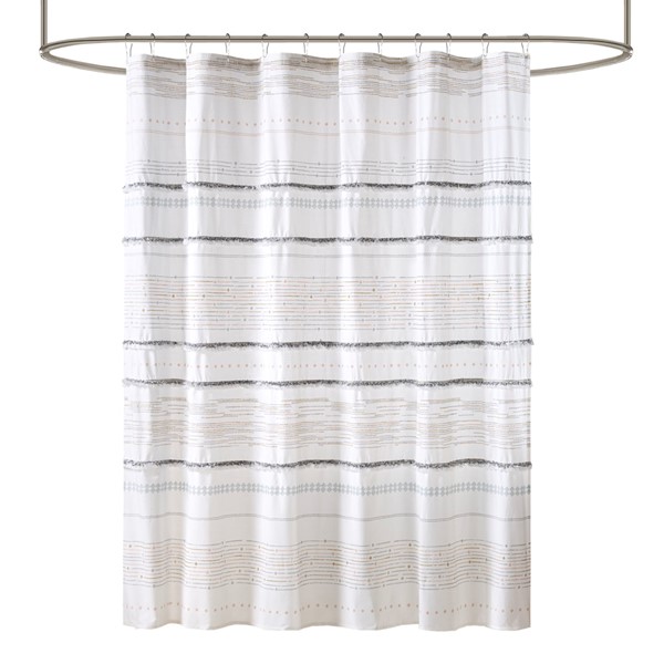 The INK+IVY Nea Cotton Printed Shower Curtain with Trims offers a stunning contemporary update to your bathroom. This 100% cotton shower curtain features tassels and a printed stripe pattern creating a chic boho look. Finished with 12 button holes at the top, this shower curtain is machine washable for easy care. Coordinating bedding set is available and sold separately.