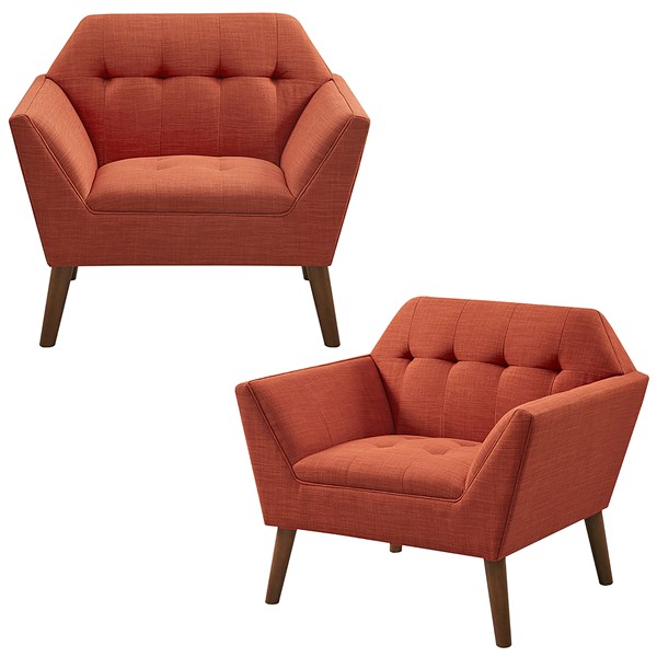 Elevate your living area with the mid-century allure of the INK+IVY Newport Upholstered Armchair. Featuring a wide 37-inch profile and a striking angular silhouette, enhanced by hand-tufted detailing, this chair makes a bold statement. The generously sized chair includes a tailored tight back and seat, offering plush, supportive comfort–perfect for lounging, reading, or relaxing. The plain, woven upholstery fabric made with filament yarn ensures durability and resilience to pilling. The solid wood legs add to its sturdy appeal. Ideal for the living room, bedroom, home office, and more, this versatile accent chair will transform your space. Bring home this stylish chair today!