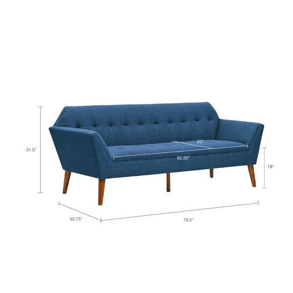Accent your living area with the mid-century allure of INK+IVY’s Newport Sofa which accompanies our Newport lounge Chair and Loveseat. The tight back and seat offers extra plush comfortable seating and features a clean tailored look accented with button tufting details. Textured upholstery and a pecan finish on the tapered wood legs gives this loveseat a warm contrast and alluring appeal. Tailored yet cushy and comfortable, this mid-century sofa is sure to make a statement in your living room. Leg assembly required.