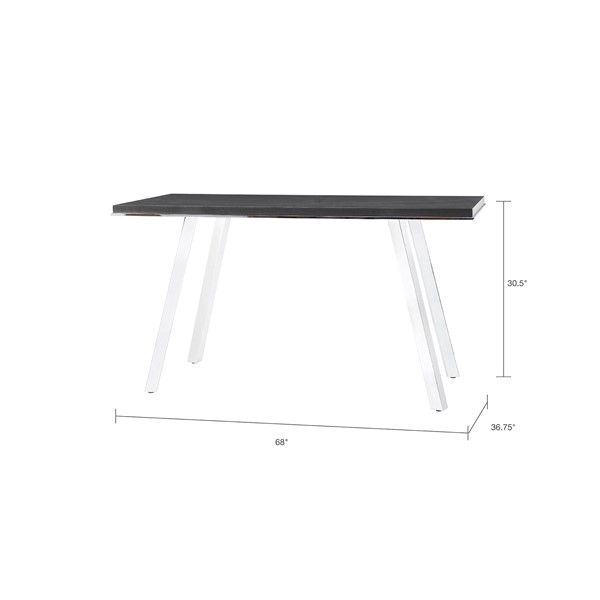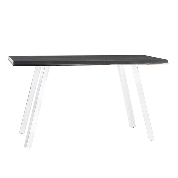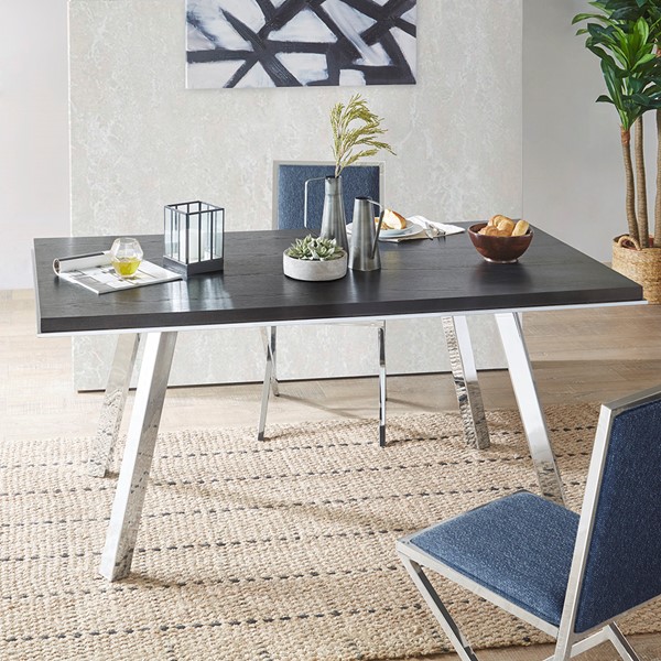 Update your dining room with the bold style of the INK+IVY Obsidian Dining Table. The dark grey tones of the wood veneer top and the chrome finish on the legs provide a modern update to the mid-century design. Make a grand statement with an industrial flair by incorporating this dining table into your decor. Assembly is required.
