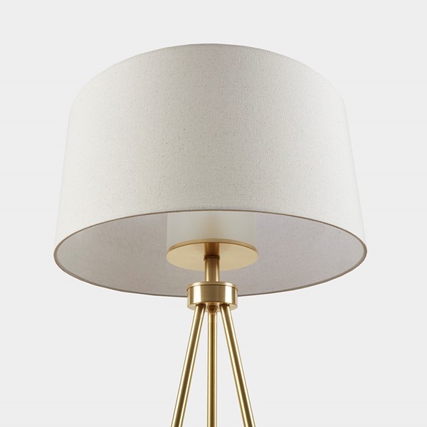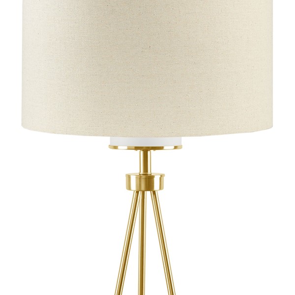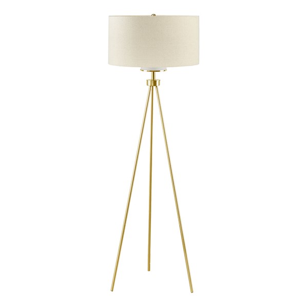 The Pacific Metal Tripod Floor Lamp with Glass Shade is the perfect update of urban sophistication to any room. A metal base is featured in a gold finish, completed with a white linen fabric shade for a simple update. One Type A light bulb is needed (not included). Assembly required.