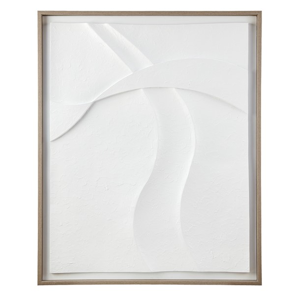 * Off white colored abstract art secured into a drop shadow moulding with angled lip