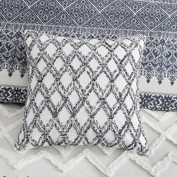 Elevate your home decor with the INK+IVY Riko Cotton Embroidered Square Pillow. Made from a cotton canvas with navy carpet stitch embroidery, this square pillow creates a charming farmhouse look. A hidden zipper closure provides a clean, finished edge and makes it easy to remove the soft insert for easy cleaning. Measuring 20"x20", this cotton embroidered square pillow adds texture and to dimension to highlight your bedroom or living room decor. Spot clean or remove cover to wash.