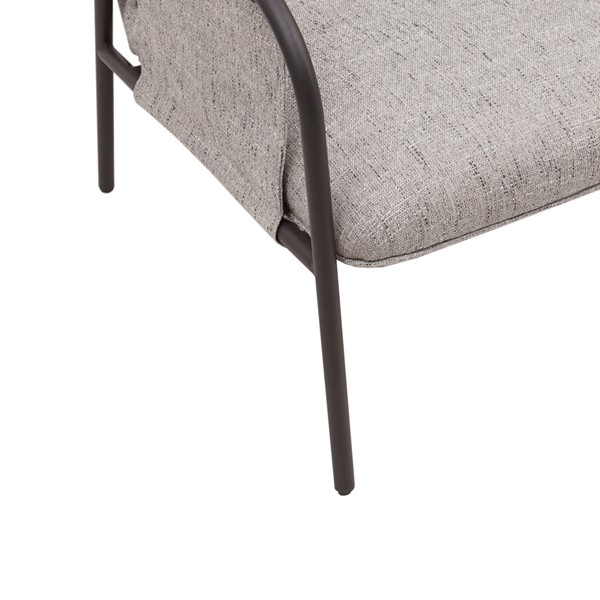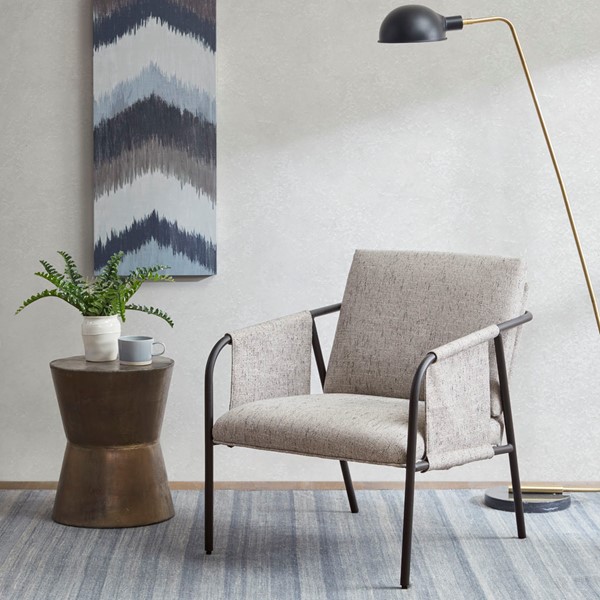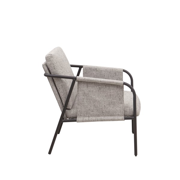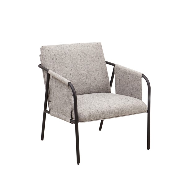 The INK+IVY Ryan Accent Chair offers a unique modern update to your home decor. Featuring an exposed black metal frame, this accent chair’s seat and back are upholstered in grey fabric to create a chic transitional look. The metal armrests are wrapped with coordinating grey fabric to complement the design, while plastic glides on the metal legs help protect your floors. Assembly is required.