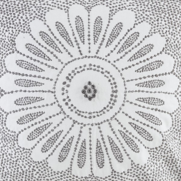 Sofia 20×20″ square pillow features a modern medallion motif with decorative grey embroidery on an off white background. Perfect for your top of bed or as an accent piece in your living room. Hypoallergenic polyester filling in removable cover. So it is easy to spot clean or hand wash the pillow cove, line dry.