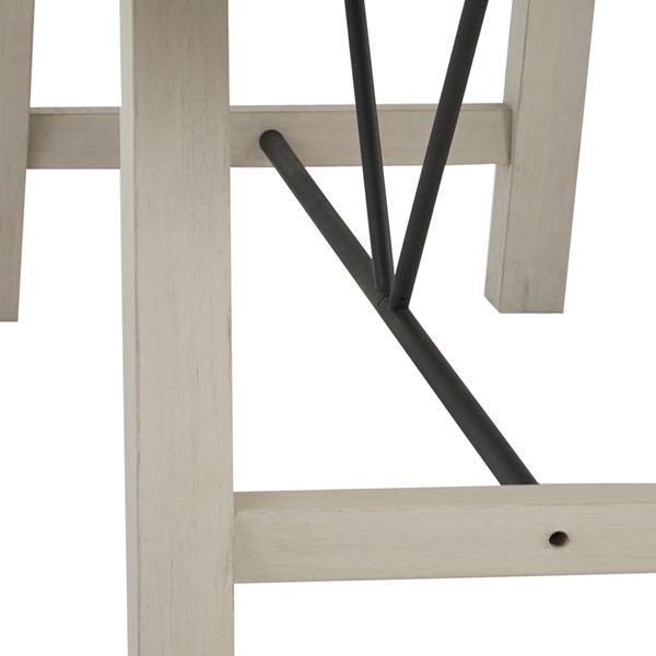 * Metal stretchers provide support and bold accent to the table
