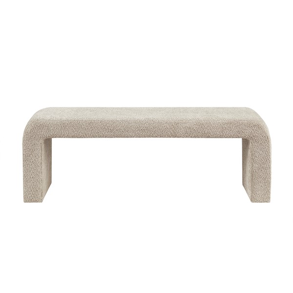 Steve bench has a sleek waterfall design with rounded corners and is upholstered in soft, textured boucle fabric. Perfect addition to any modern contemporary home and also provides a comfortable and cozy place to sit while putting on your shoes or in the bedroom as an extra seat. Requires no assembly.