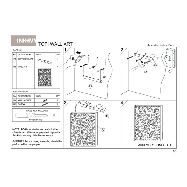 * Single piece item measures 30"W x 20"H x 2"D