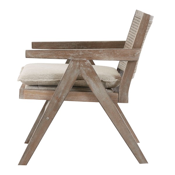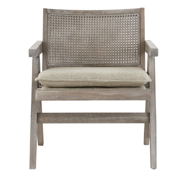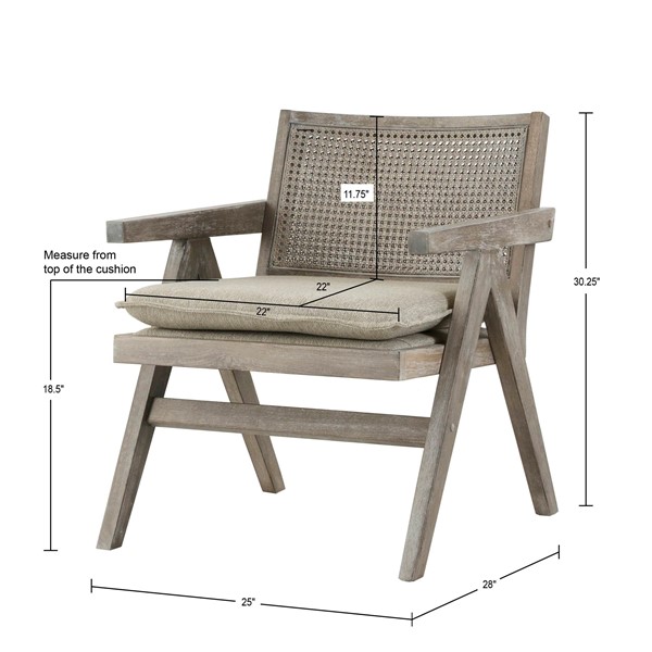 Give your home a one-of-a-kind natural update with the INK+IVY Ventura Accent Chair. This accent chair features a rattan back and a solid hardwood frame in a grey aged oak finish to create an organic appeal. The upholstered attached seat cushion provides exceptional comfort, while also completing the raw look of the chair. With a simple and unique design, this accent chair offers a mid-century style with a rustic flair for your living room. Leg assembly is required.