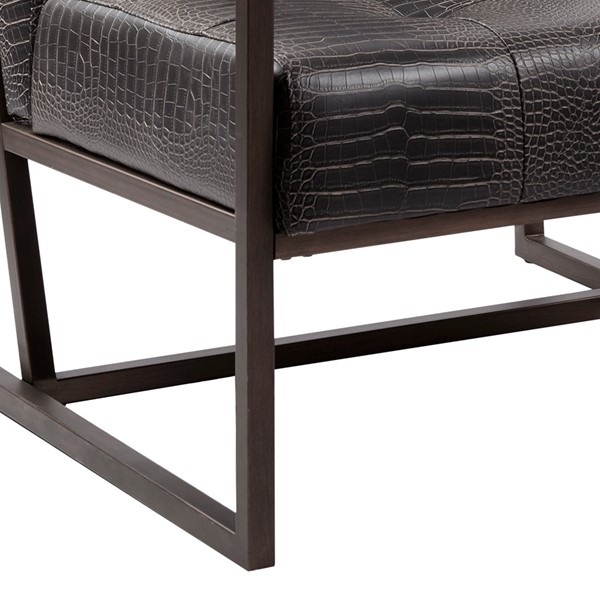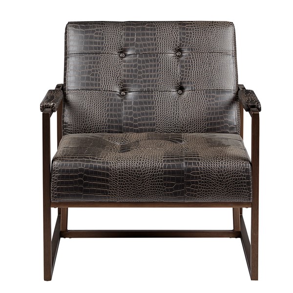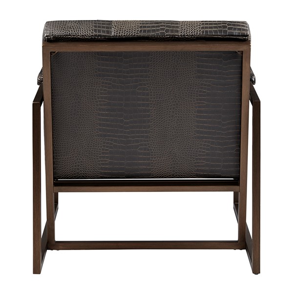 Envelop yourself in the luxurious comfort of INK+IVY’s Waldorf Lounge Chair. This deep seated accent chair is upholstered in dark chocolate brown snakeskin patterned polyurethane, creating a strong and stately look. An antique bronze finish on the metal frame provides an alluring accent to the design. With its dapper style, this lounge chair adds a luxurious touch to your living room decor. Assembly is required.