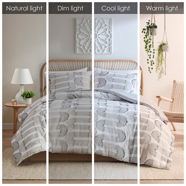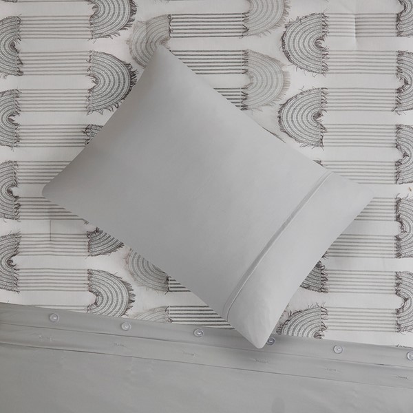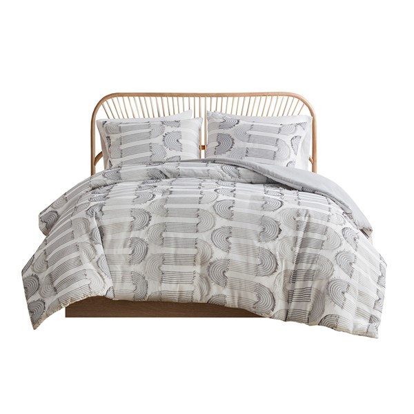 Modern and casual, the Intelligent Design Astoria Clip Jacquard Duvet Cover Set offers a chic update to your bedroom. This duvet cover features a geometric clip jacquard design that adds texture and dimension to your bed. The matching shams (1 in Twin/TwinXL) complete the charming and unique look. Machine washable for easy care, this jacquard comforter set flaunts a unique design that brings fresh new look to your bedroom decor. The comforter set is also OEKO-TEX certified, meaning it does not contain any harmful substances or chemicals to ensure quality comfort and wellness and has an antimicrobial treatment that helps reduce the growth of odor causing bacteria and keeps fabric lasting longer. A button closure at the foot end allows you to place a padded insert within the duvet cover and internal corner ties prevent it from shifting (Insert is NOT included).