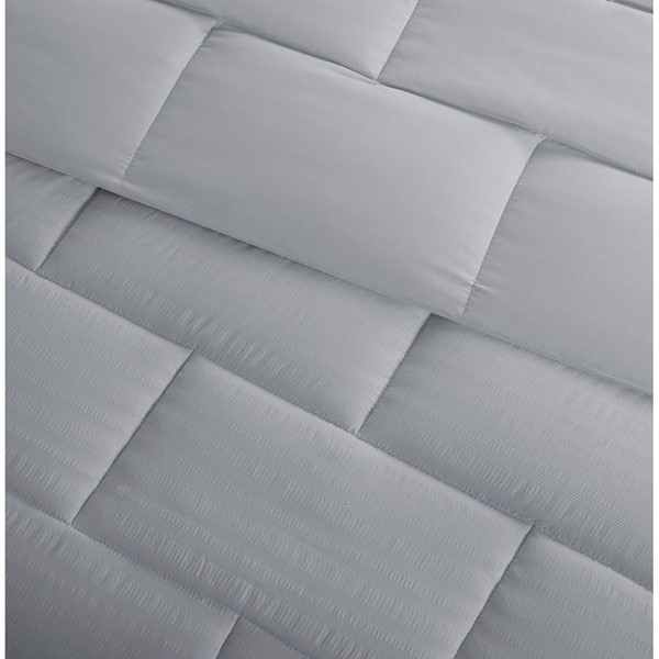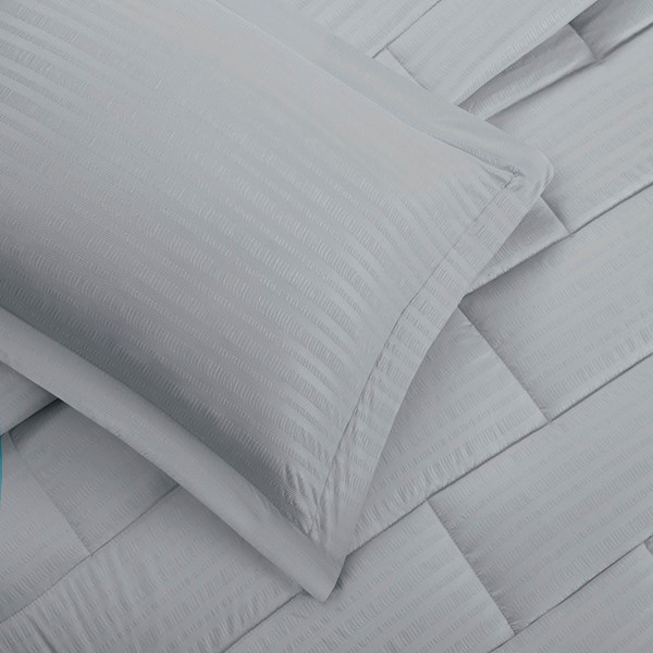Comforter: face: 85gsm solid crinkled microfiber; reverse: 85gsm solid micro fiber; satin cord, 220g/m2 6D brushed fiber fill, subway tile quilting