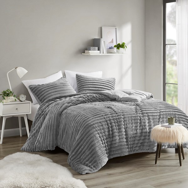 Intelligent Design Avril Corded Plush Comforter Set in Grey, Full/Queen ID10-2349
