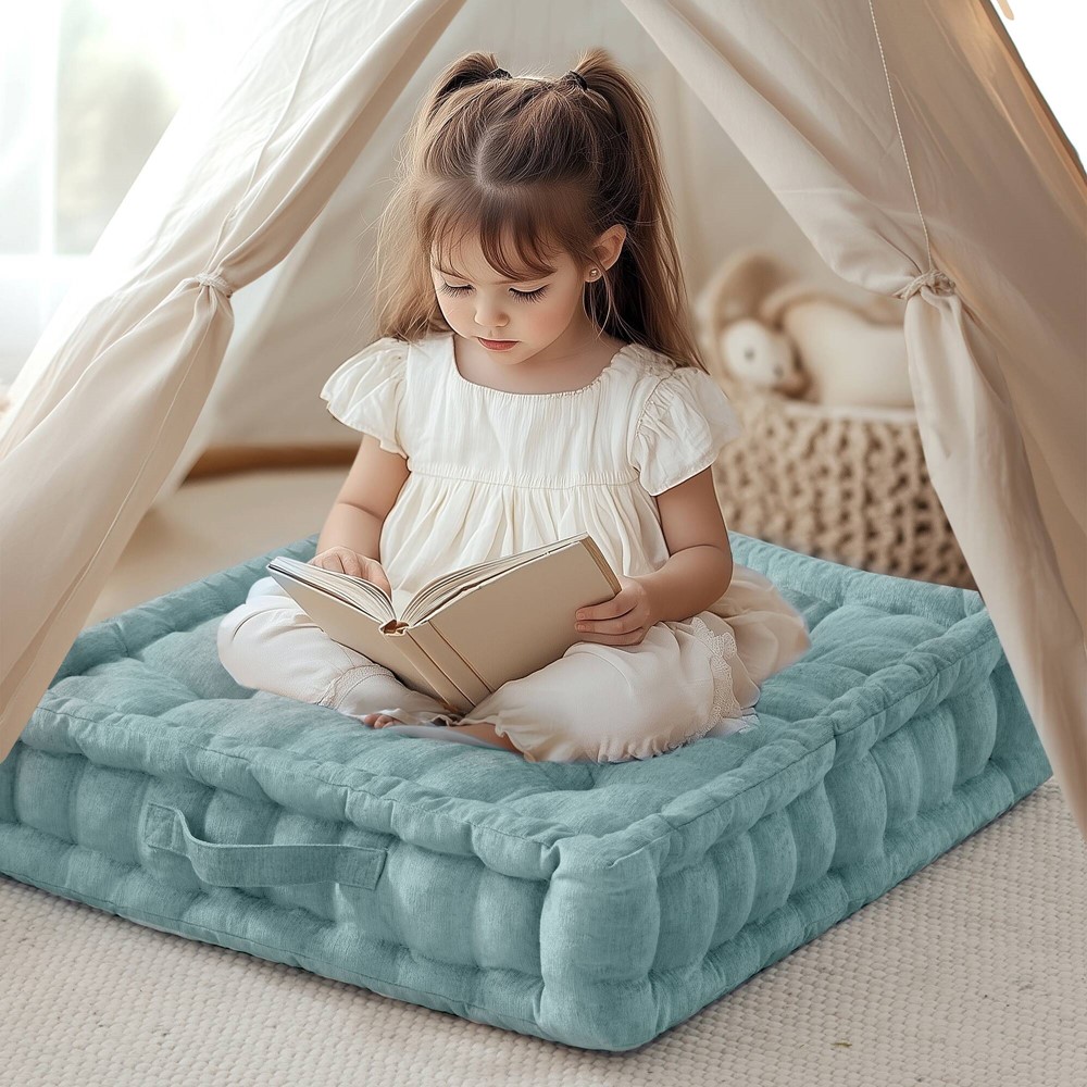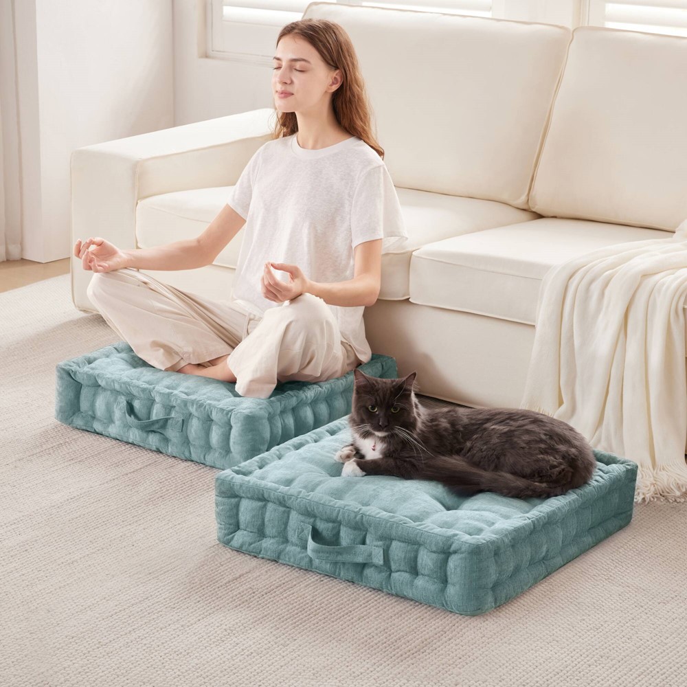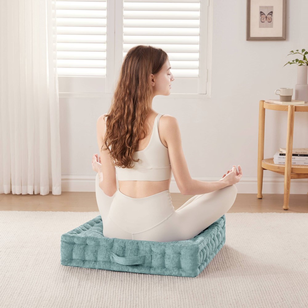 Be the first to review “Intelligent Design Azza Poly Chenille Square Floor Pillow Cushion in Aqua, 24×24″ ID31-2468”
