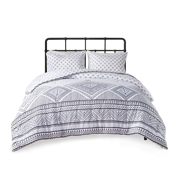 The Intelligent Design Camila Reversible Comforter Set brings an eye-catching update to make your bedroom stand out. This reversible comforter features a bold contrasting geometric design with a small diamond pattern on the reverse for two distinct contrasting looks. The matching shams (1 in Twin/TwinXL) repeat the globally inspired design of the comforter to complete the modern bedding set. The hypoallergenic polyester filling in the casual comforter contains no allergens and is treated to be dustproof. Machine washable for easy care, this reversible comforter set is OEKO-TEX certified, meaning it does not contain any harmful substances or chemicals to ensure quality comfort and wellness. An antimicrobial treatment helps reduce the growth of odor causing bacteria and keeps fabric lasting longer. Items may come in rolled or compressed packing and will need to be fluffed up. Use a steam iron to help remove wrinkles easier.