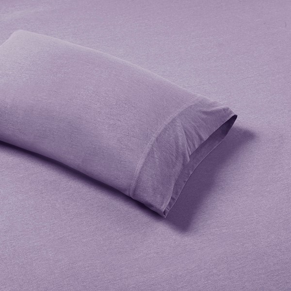 The all season jersey knit cotton blend sheet set is as comfortable as sleeping on your favorite tee. Unlike woven sheet set, this knit sheet set is easier to get into bed during cold weather or absorbent for summer. Choose from a variety of colors for comfort and style in your bedroom. Set includes 1 flat sheet, 1 fitted sheet and 2 pillowcases (1 in Twin size). Machine wash and tumble dry on low to prevent shrinkage. Fitted sheet fits up to 16 inches of mattress.