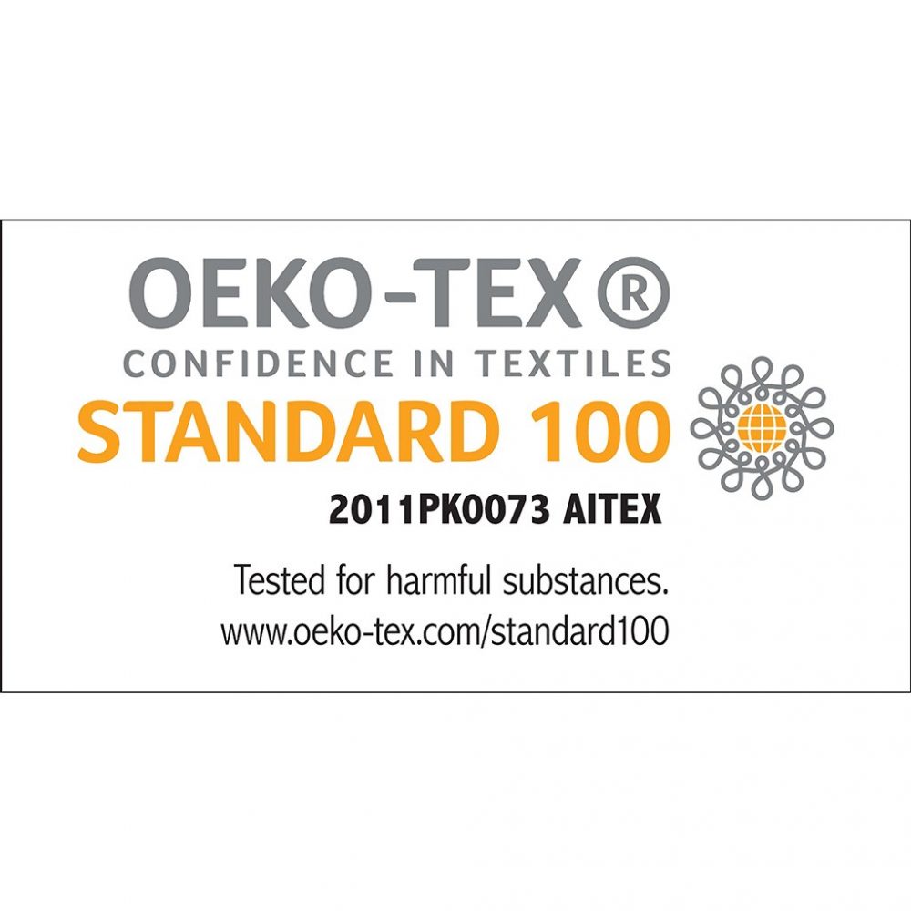 Oeko-Tex Certified, includes no harmful substances or chemicals