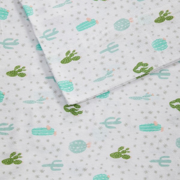 Intelligent Design Cozy Soft Cotton Flannel Printed Sheet Set in Green Cactus, Twin ID20-2048