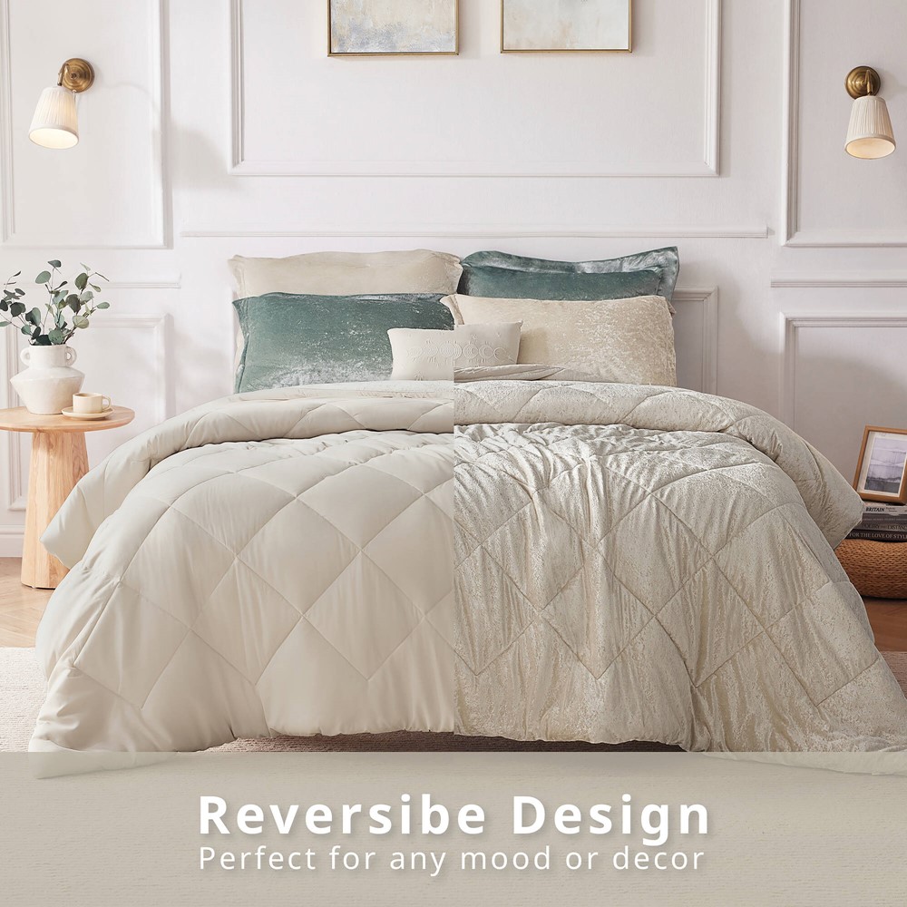 * Luxurious crushed velvet duvet cover set features diamond quilting on top of the bed