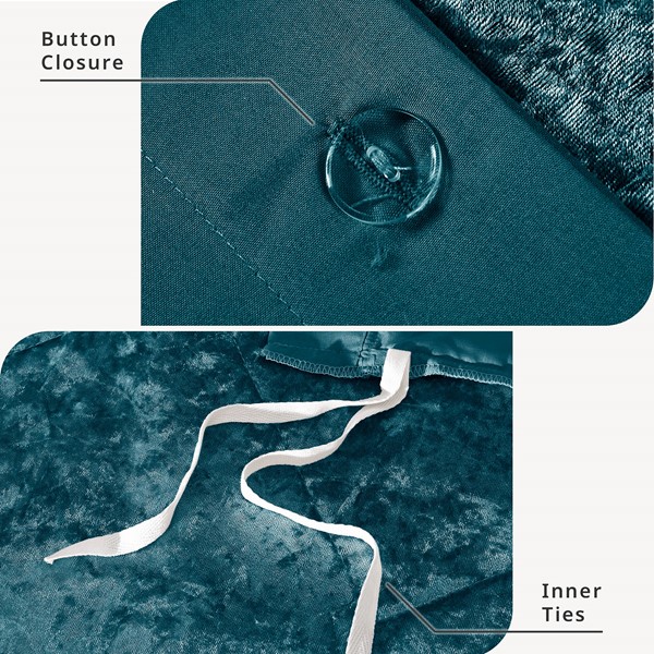 Create a luxuriously comfortable and lush bedroom space with the Intelligent Design Felicia Velvet Duvet Cover Set. The crushed velvet, teal duvet cover features a quilted diamond top that adds dimension to the glamorous look. Matching shams (1 for Twin/Twin XL Sizes) coordinate with the velvet duvet cover, while an oblong decorative pillow provides the perfect finishing touch. Machine washable for easy care, this velvet duvet cover set brings incredible softness and comfort with a glamorous flair to your bedroom decor. Button closures allow you to place a comforter insert within the duvet cover and internal corner ties help prevent it from shifting (Insert is NOT included).