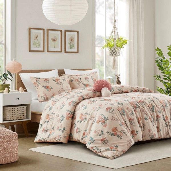 Intelligent Design Gwen Mushroom Garden Comforter Set in Blush, Full/Queen ID10-2492