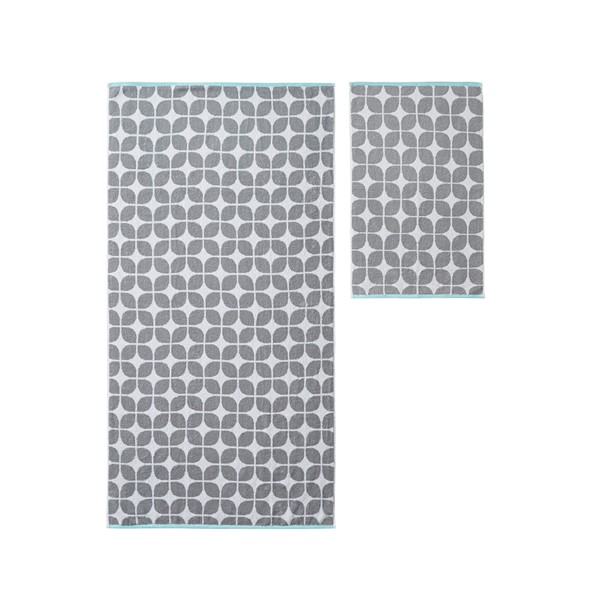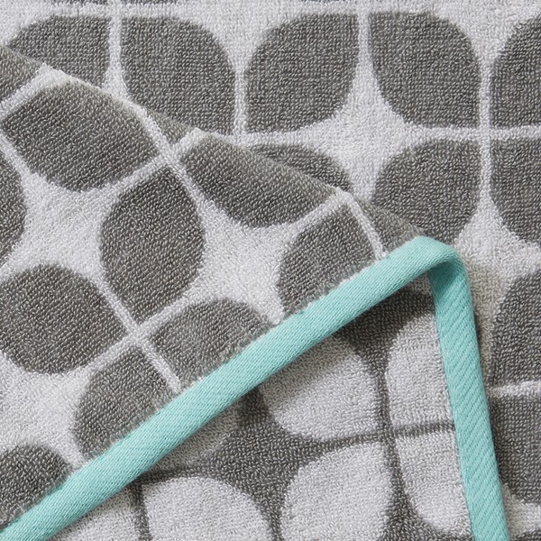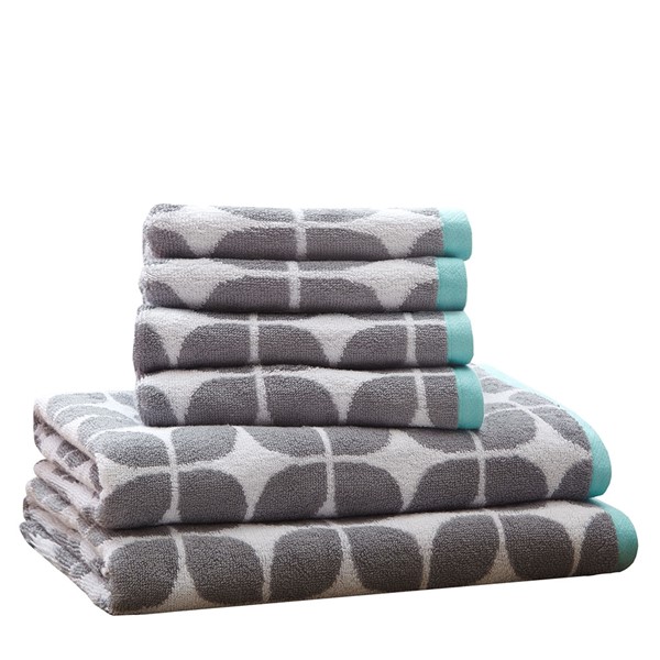 Add the Intelligent Design Lita 6 Piece Towel Set to your bathroom for a fun and chic update! These towels feature a reversible dark grey geometric print with a small teal dobby border, creating an eye-catching look. The 2-ply ring spun combed woven cotton jacquard construction makes each towel incredibly absorbent and soft. These cotton towels are also Made in Green by OEKO-TEX certified, meaning they do not include any harmful substances or chemicals while also using sustainable processes and socially responsible working conditions, for the best in quality comfort and wellness. Machine washable for easy care, this 6 piece towel set is perfect to freshen up any bathroom with a little style and color. Set includes: 2 standard 28×54" bath towels and 4 standard 16×26" hand towels.