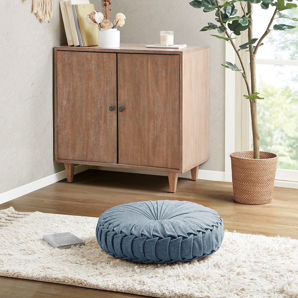 Make any space extra comfy with our Intelligent Design Loretta Poly Chenille Round Floor Pillow Cushion. This floor pillow is featured in soft hues for the perfect feminine flair, while the rich textured poly chenille creates a soft hand and light natural luster for an irresistibly inviting look and feel. A tufted button center and all over unique pleated detailing adds beautiful dimension and style, while 100% polyester filling provides a simple and comfortable seat. Stack these round floor pillow cushions in any floor space for a fun and cozy vibe, or simply add a few to any seating area for a little cushion and support. Coordinating square and long lounge floor cushion are available and sold separately.