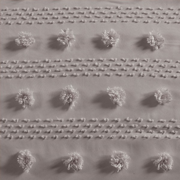Refresh your bedroom with the elegant style of Intelligent Design’s Lucy Clip Jacquard Comforter Set. This beautiful comforter features fun and playful clip jacquard pompoms all over the face that add dimension to the top of the bed for a lovely look. The matching shams (1 in Twin/TwinXL) also flaunt the delicate design of the comforter to complete the jacquard bedding set. Hypoallergenic polyester filling in the fashionable comforter contains no allergens and is treated to be dustproof. Machine washable for easy care, this elegant comforter set is OEKO-TEX certified, meaning it does not contain any harmful substances or chemicals to ensure quality comfort and wellness. An antimicrobial treatment helps reduce the growth of odor causing bacteria and keeps fabric lasting longer. Items may come in rolled or compressed packing and will need to be fluffed up. Use a steam iron to help remove wrinkles easier.