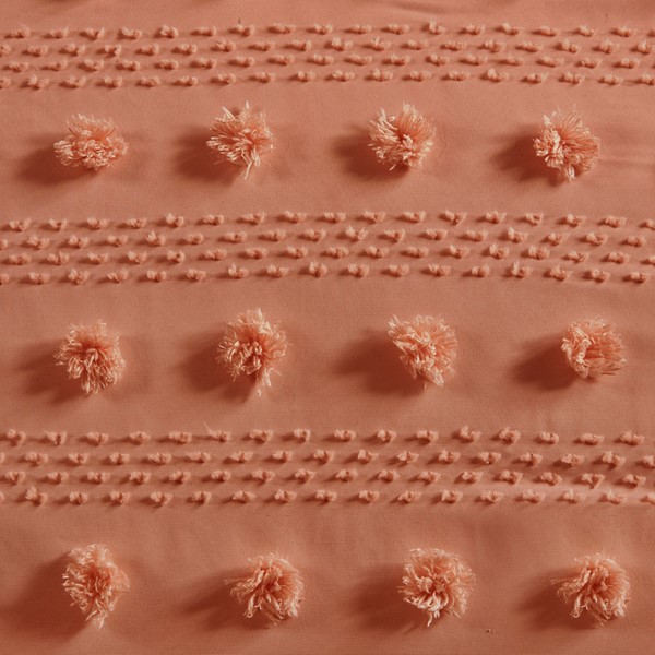 Refresh your bedroom with the elegant style of Intelligent Design’s Lucy Clip Jacquard Comforter Set. This beautiful comforter features fun and playful clip jacquard pompoms all over the face that add dimension to the top of the bed for a lovely look. The matching shams (1 in Twin/TwinXL) also flaunt the delicate design of the comforter to complete the jacquard bedding set. Hypoallergenic polyester filling in the fashionable comforter contains no allergens and is treated to be dustproof. Machine washable for easy care, this elegant comforter set is OEKO-TEX certified, meaning it does not contain any harmful substances or chemicals to ensure quality comfort and wellness. An antimicrobial treatment helps reduce the growth of odor causing bacteria and keeps fabric lasting longer. Items may come in rolled or compressed packing and will need to be fluffed up. Use a steam iron to help remove wrinkles easier.