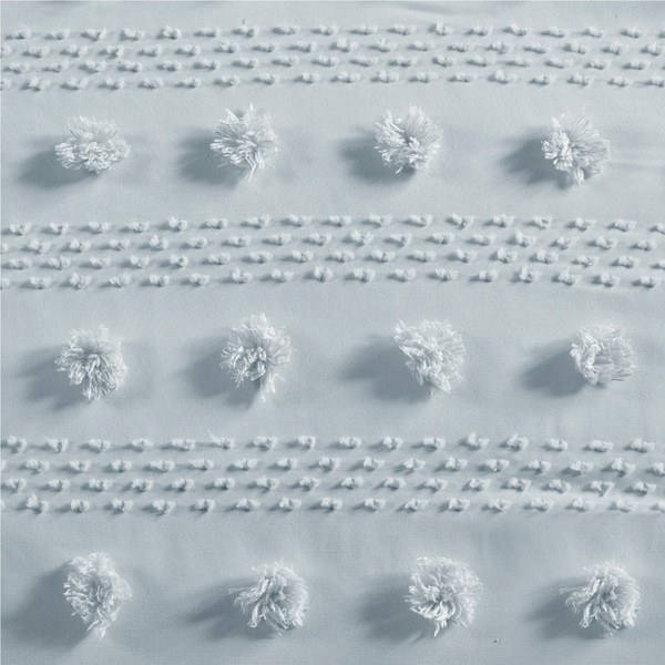Refresh your bedroom with the elegant style of Intelligent Design’s Lucy Clip Jacquard Duvet Cover Set. This beautiful duvet cover features fun and playful clip jacquard pompoms all over the face that add dimension to the top of the bed for a lovely look. The matching shams (1 in Twin/TwinXL) also flaunt the delicate design of the duvet cover to complete the jacquard bedding set. Machine washable for easy care, this elegant duvet cover set is OEKO-TEX certified, meaning it does not contain any harmful substances or chemicals to ensure quality comfort and wellness. An antimicrobial treatment helps reduce the growth of odor causing bacteria and keeps fabric lasting longer. A button closure at the foot end allows you to place a padded insert within the duvet cover and internal corner ties prevent it from shifting (Insert is NOT included).