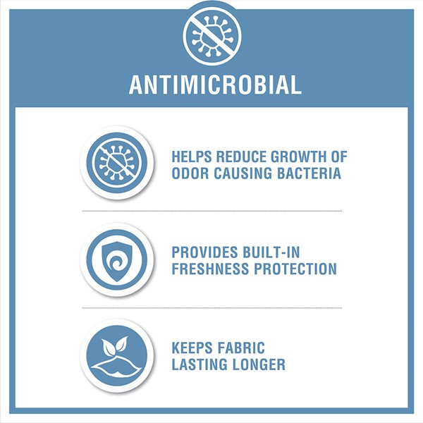 * Antimicrobial treatment helps reduce the growth of odor causing bacteria and keeps fabric lasting longer